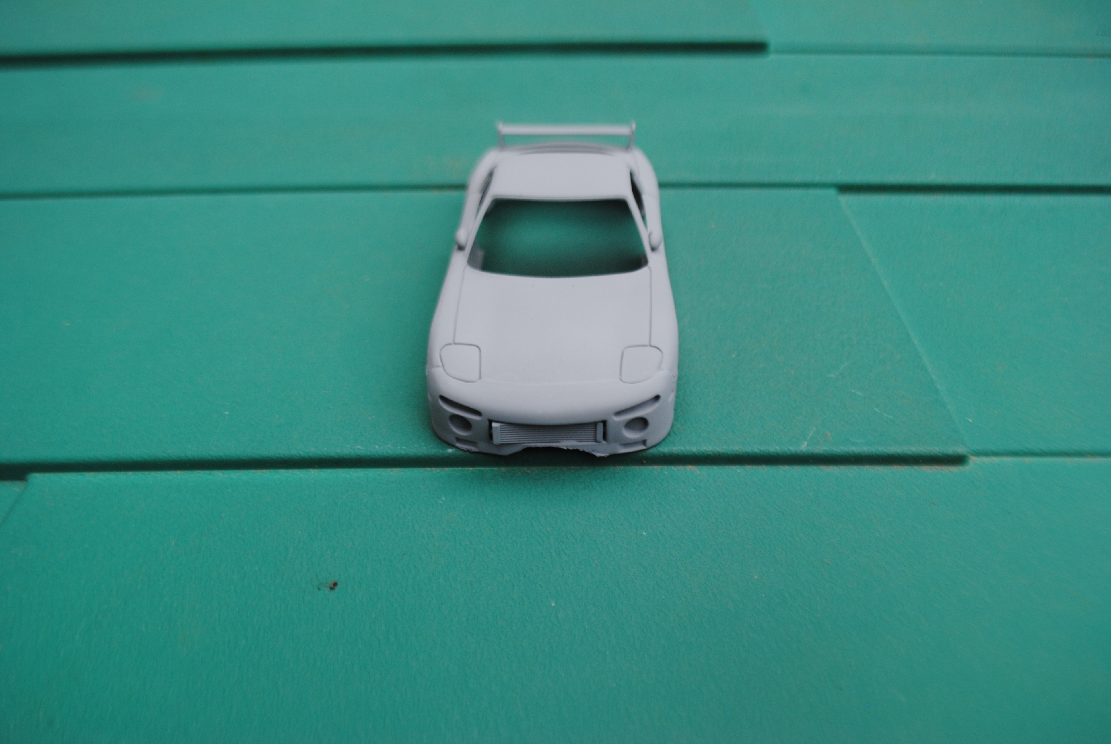 I had in my possession an Arii 1/32 Mazda RX7 kit and a Scalextric C3 Chevrolet Corvette. The Corvette, sadly, had seen better days after I used it as a club racing car; the windows were missing, it had scratches on the roof and a few other little bits of damage.