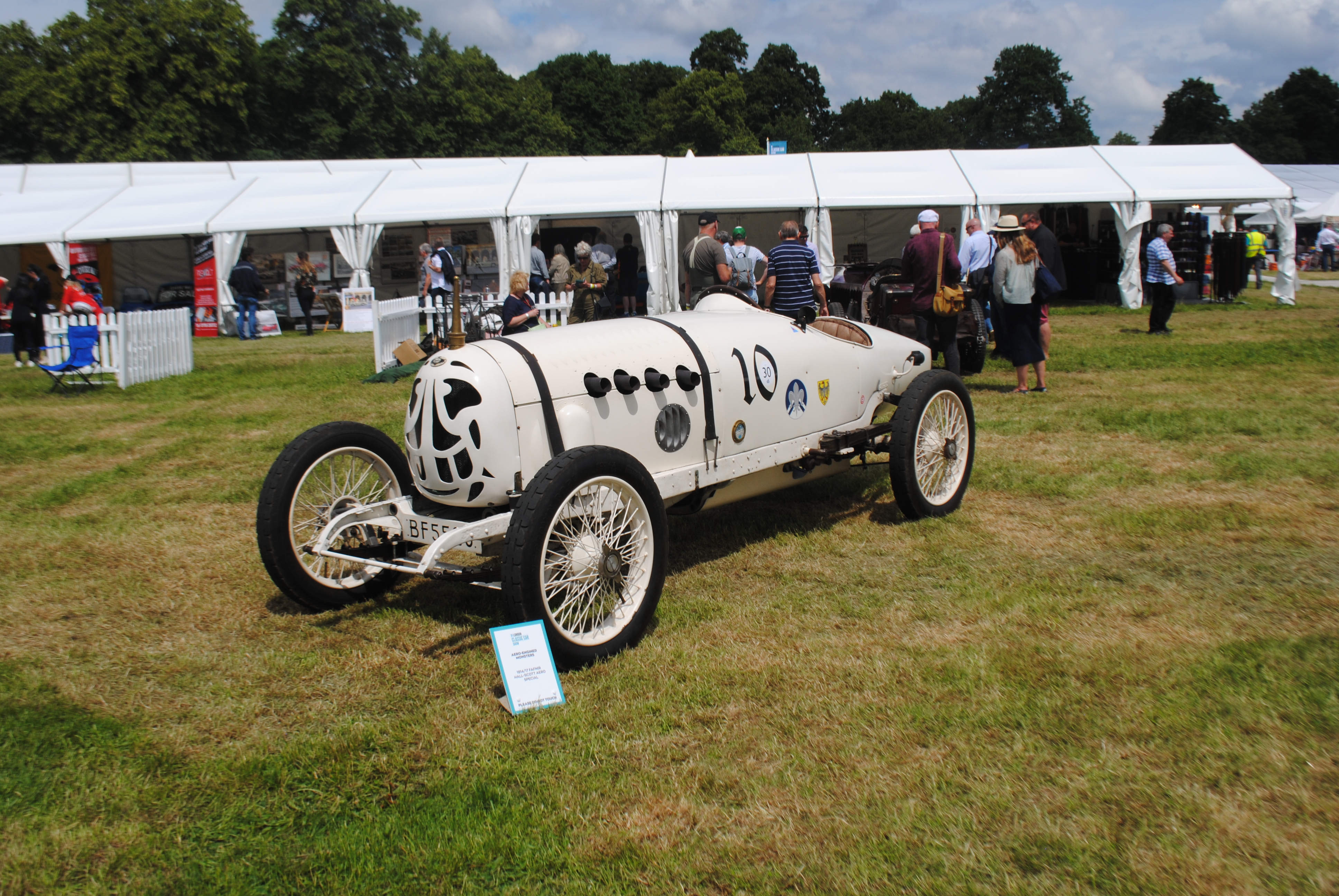 Across from there was a display of aero-engined cars. Although shoehorning aircraft engines into car chassis’ began to crop up in the 1910s, the practise really ‘took off’ (if you’ll pardon the pun) following the First World War, when there was a surplus of engines stripped from military aircraft.