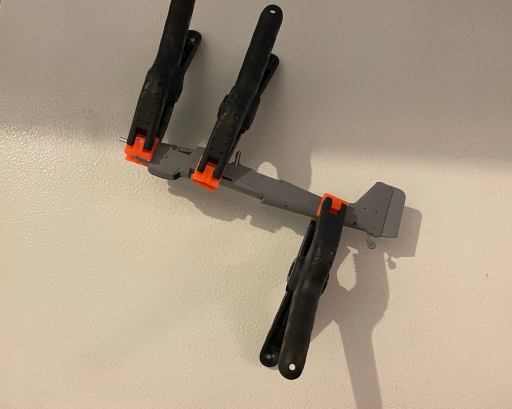 The two halves of the wings needed clamping together.