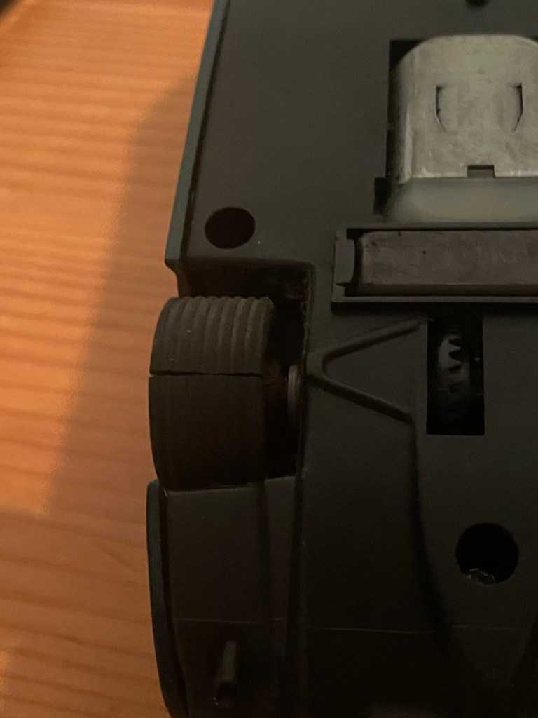 You can see that the guide’s little spring loaded tab stem thingy doesn’t come all the way up through the chassis.