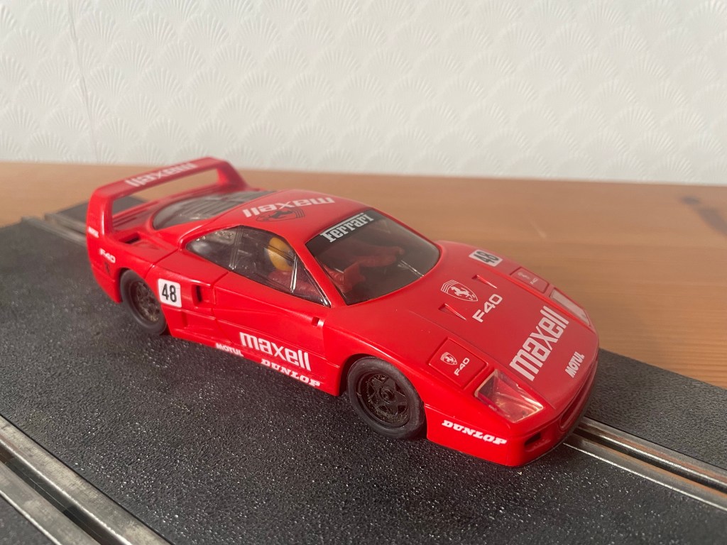 This one didn’t really need a lot. The rear tyres were knackered so I got a new set from Scalextric Restorations: http://www.scalextric-car.co.uk/Parts/Tyres/Tyres_F40_wide/Tyres_F40_Wide.htm
