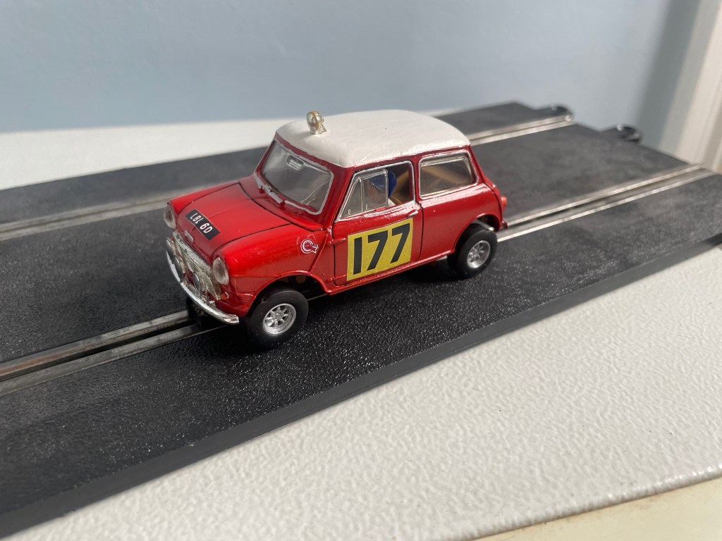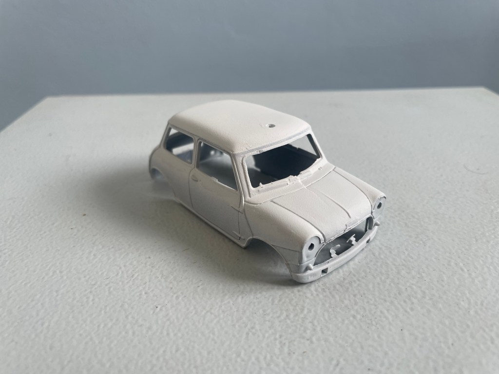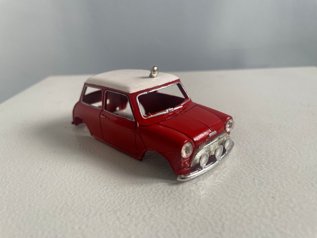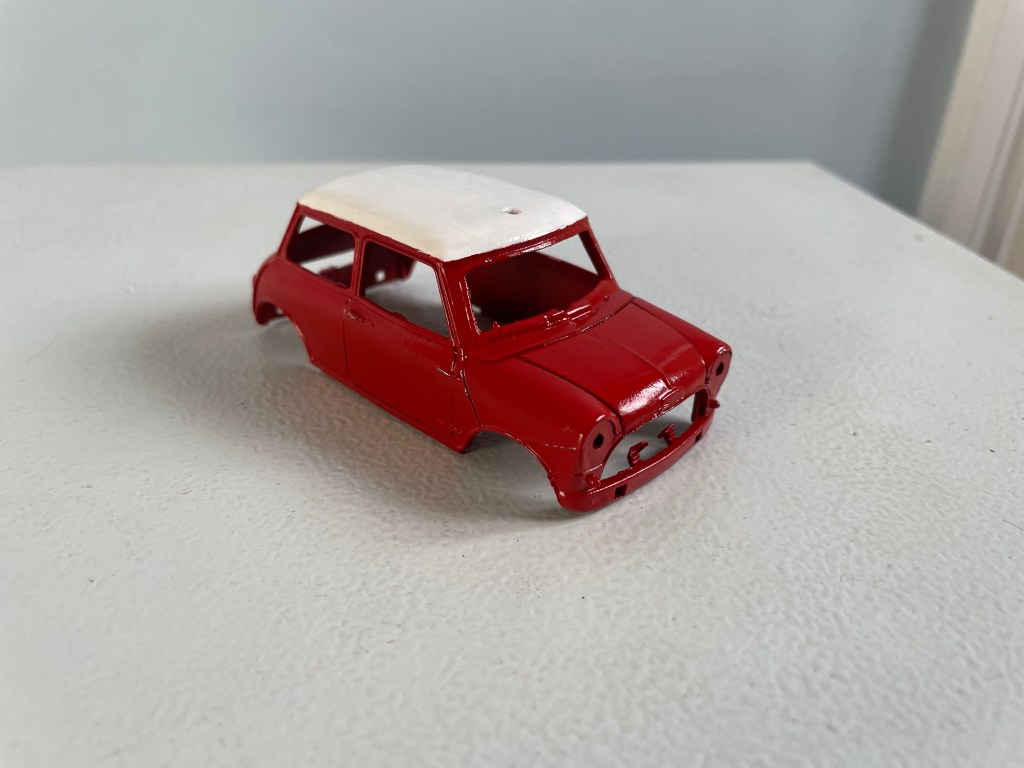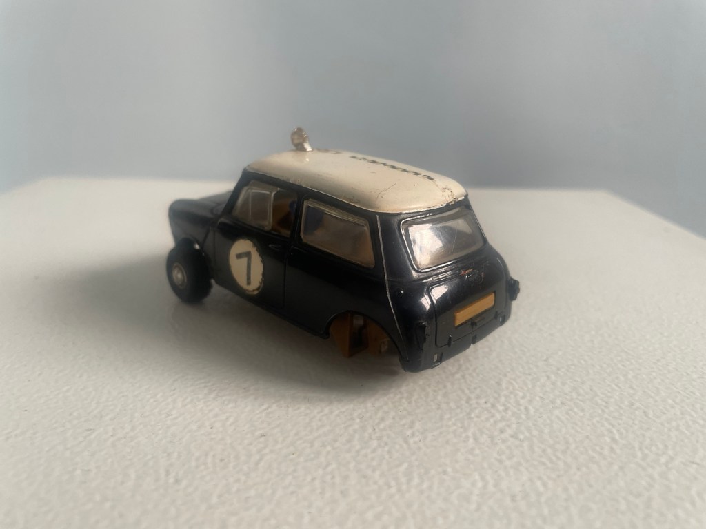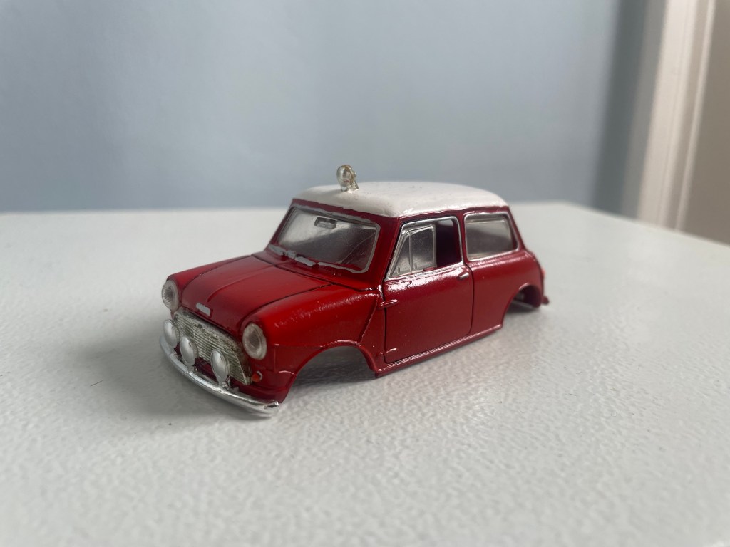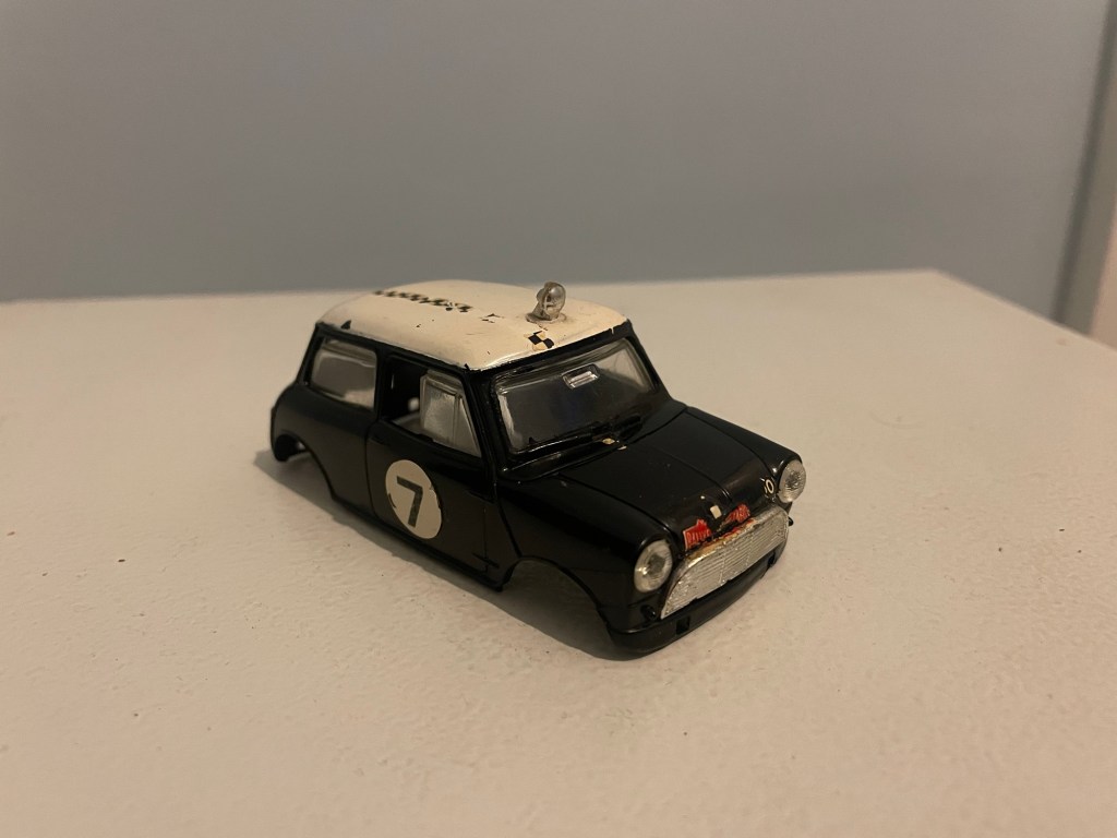 A few months back my Dad brought a very neglected pair of Scalextric Mini body shells.