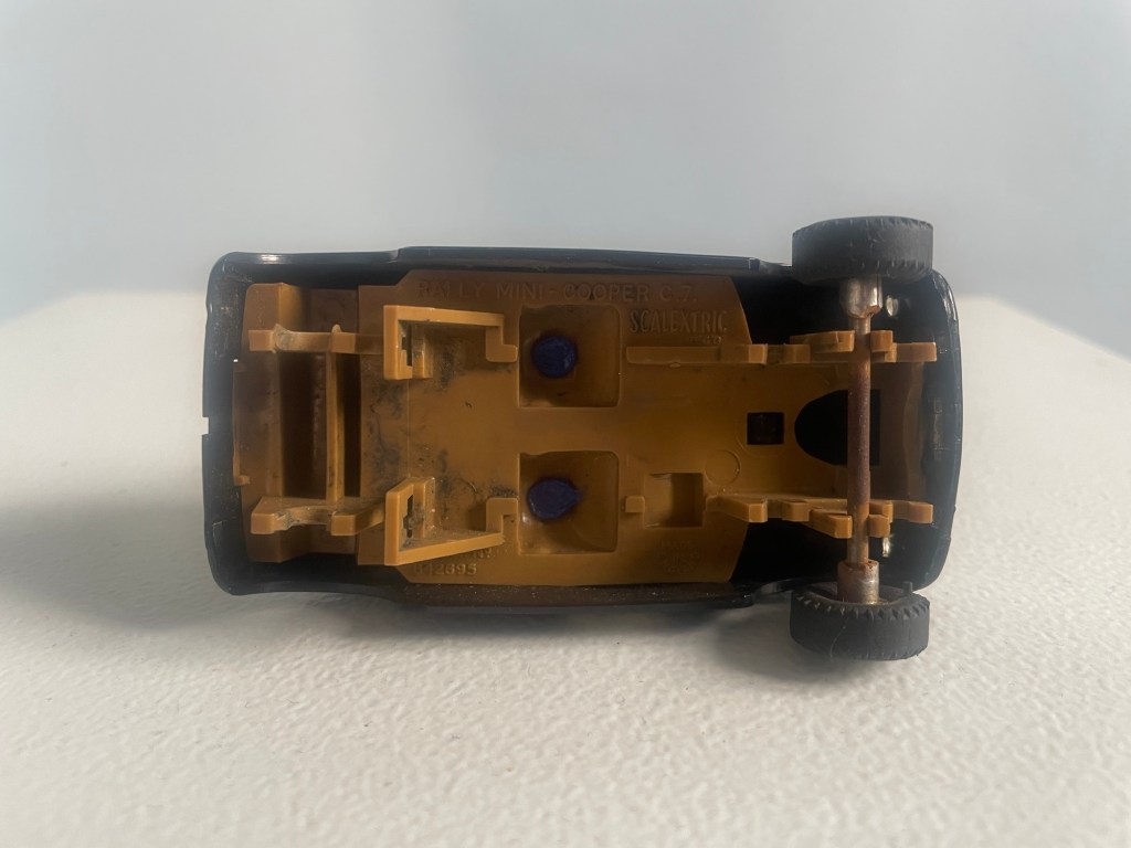 The catalogue number on these cars is C7. According to the Scalextric Collectors Guide the C7 in black was available from 1968 to 1970, which makes it the oldest car in my collection!
