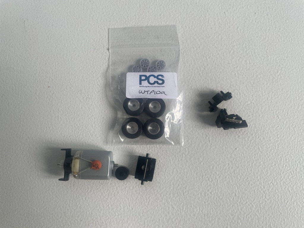 I brought some narrow 10 inch wheels with minilite inserts from Pendleslot Racing which arrived perfectly as their packages always do.