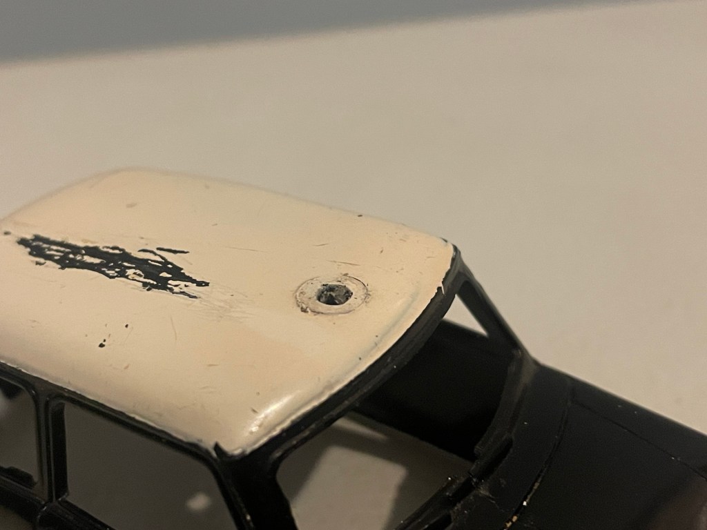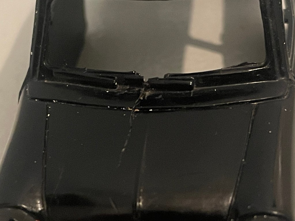 I thought that it might have been the pin fur the spotlight pressing the front windows down. There is a little hole in the clear plastic for the pin to pass through which wasn’t big enough. So I opened the hole up expecting it to cute it. Sadly it didn’t.