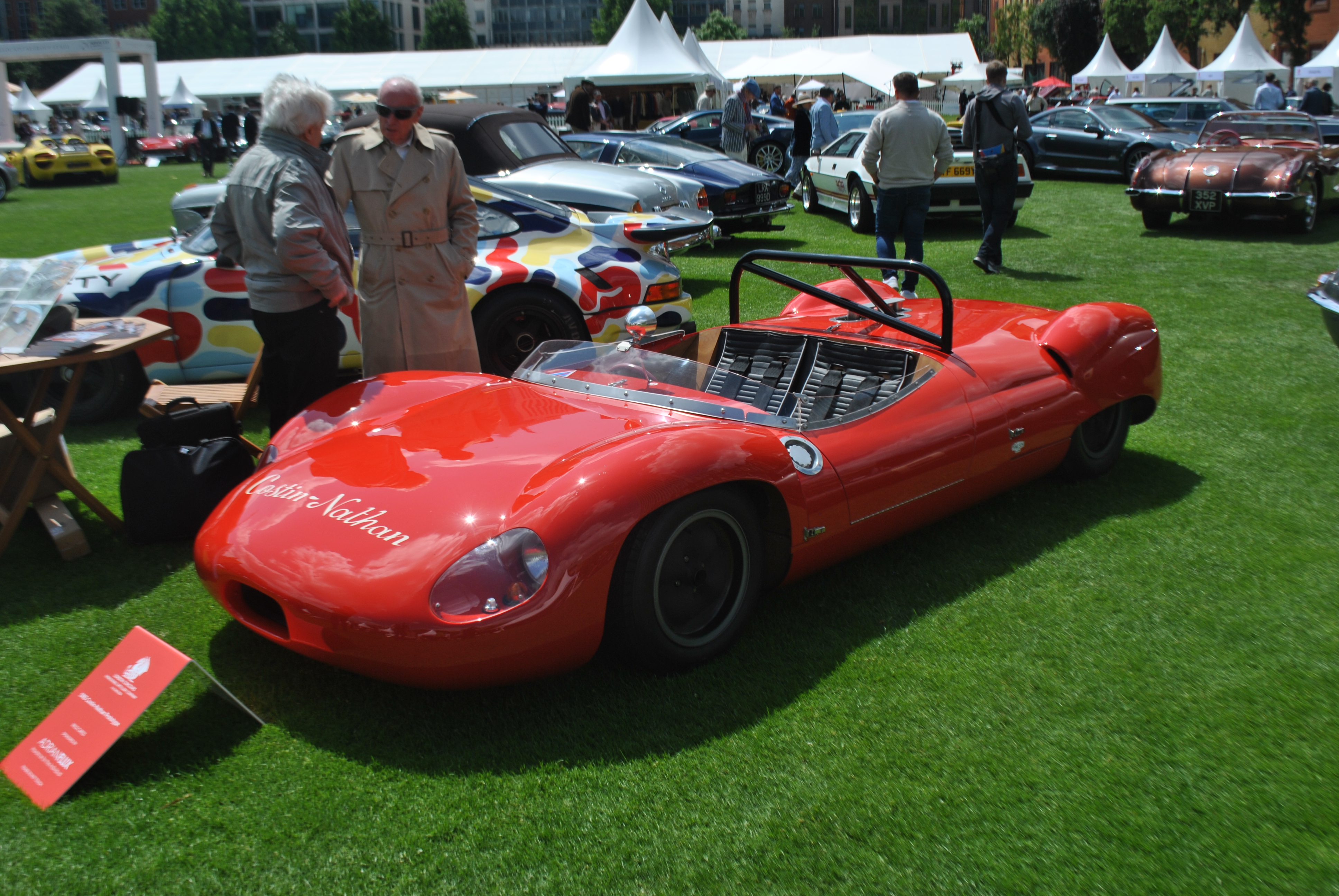 This little race car is a Costin-Nathan GT Prototype. It was hand built by Frank Costin and Roger Nathan to compete in the Group 6 series.